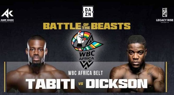 Jacob Dickson will headline the fight night with Andrew Tabiti from the United States battling for the WBC Bridgerweight African title.