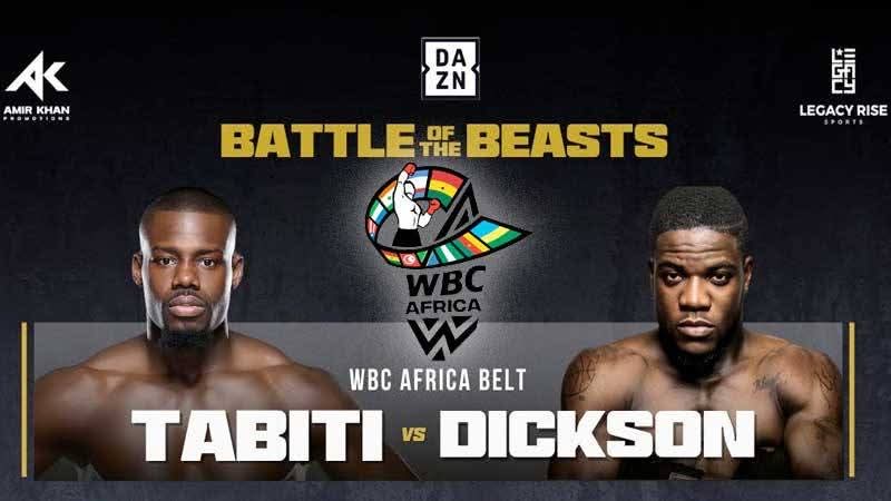 Jacob Dickson will headline the fight night with Andrew Tabiti from the United States battling for the WBC Bridgerweight African title.
