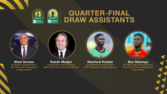 The Confédération Africaine de Football (CAF) has confirmed four prominent African football figures as draw assistants for the 2024/25 TotalEnergies CAF Champions League and TotalEnergies CAF Confederation Cup quarter-final draws, scheduled to take place on Thursday, 20 February in Doha, Qatar.