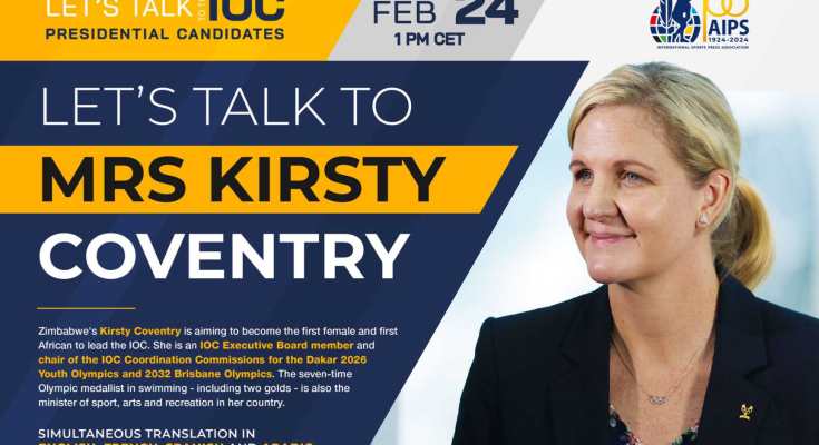 On Monday, 24 February, Coventry will be the first guest on “Let’s Talk to the IOC Presidential Candidates”, a series of Q&A sessions that offers a unique platform for the candidates to communicate their vision for the Olympic movement to sports journalists from different parts of the world.