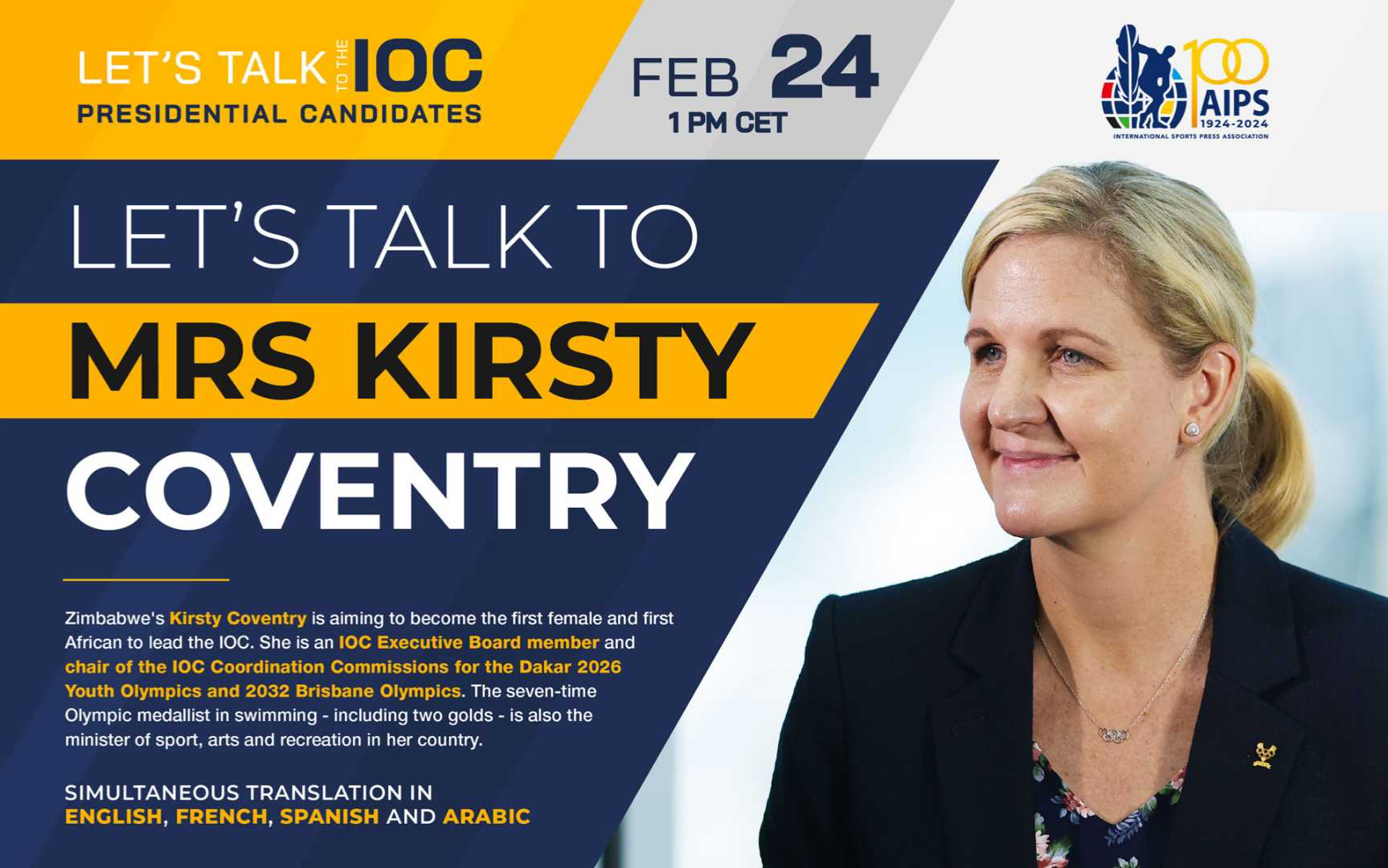 On Monday, 24 February, Coventry will be the first guest on “Let’s Talk to the IOC Presidential Candidates”, a series of Q&A sessions that offers a unique platform for the candidates to communicate their vision for the Olympic movement to sports journalists from different parts of the world.